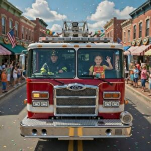Join in on all of the fun and excitement that a Parade brings to your city. In this adventure, your child is asked to lead the parade with the Mayor of your town in a shiny red fire truck. After being flown by helicopter over the parade route, your child leads marching bands, prancing horses, dancing bears, jugglers, and all kinds of other attractions right down Main Street in your town. At the end of the book there is a little game to unscramble letters and reveal the names of some of the characters your child read about.